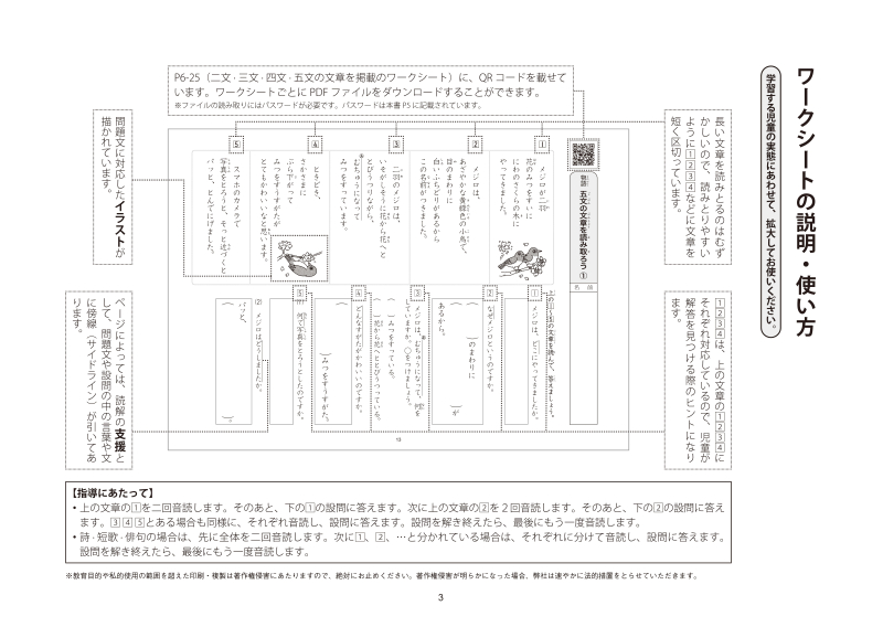 ・読み書きが苦手な子どもでも,段階を追って学習することができるよう問題が作成されています。