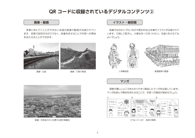 ・内容を理解するための絵やイラスト,マンガなどを多く取り入れているので,楽しく学べて力がつきます。
