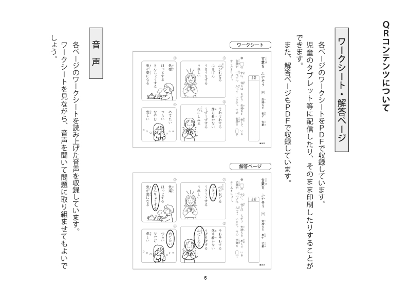 ・QRコードには,「各ページのワークシート」「ワークシートを読み上げた音声」を収録しています。ワークシートを見ながら音声を聞いて問題に取り組むことができます。