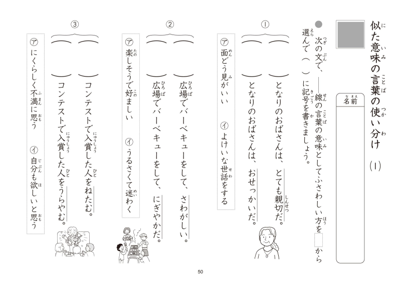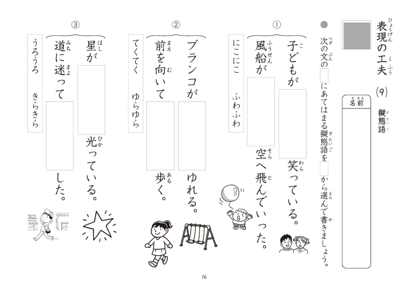 ・光村図書を中心に,東京書籍,教育出版の教科書のことばの単元の内容を研究し,問題を作成しています。