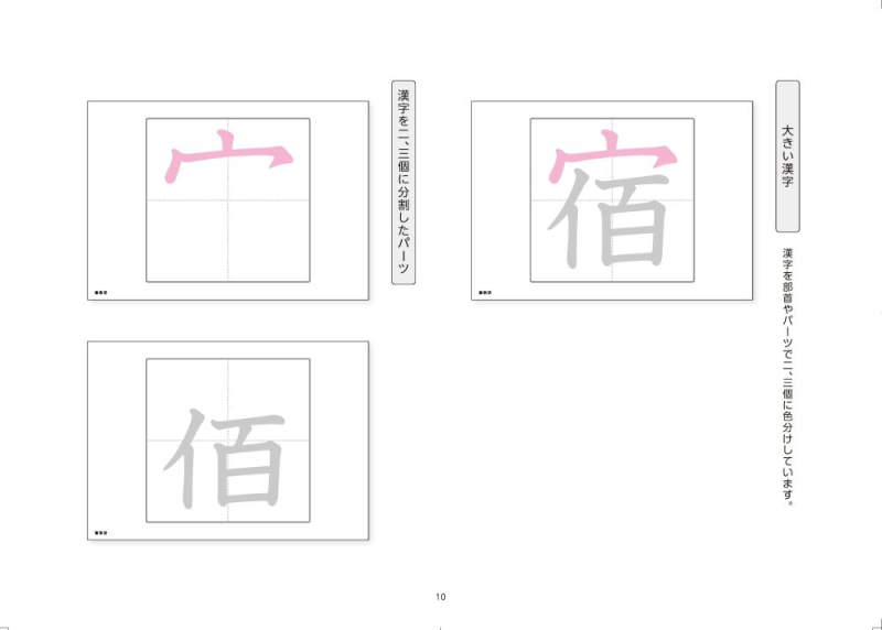 ・指でもなぞれるように漢字を大きく掲載し,書き順がわかりやすいように赤い矢印を入れています。