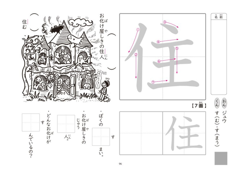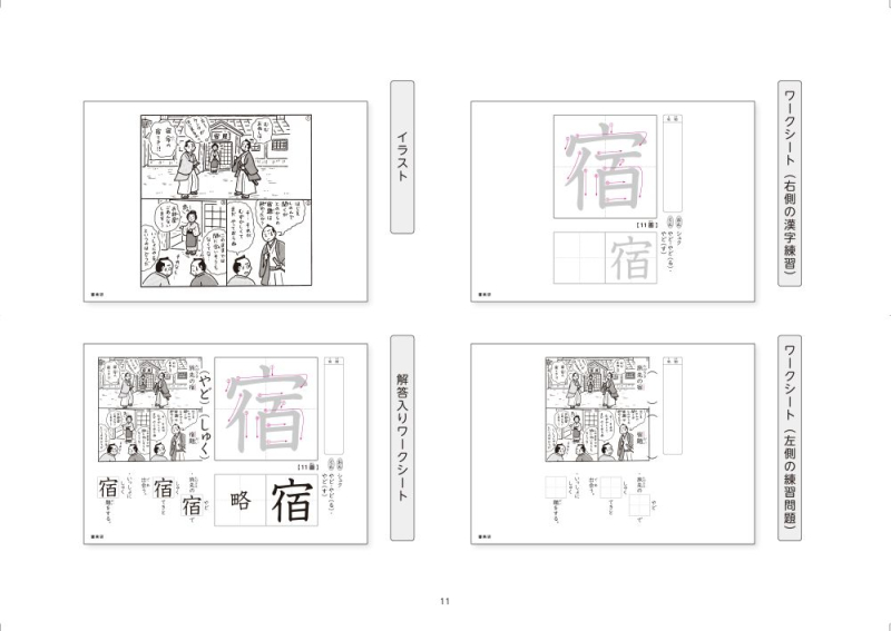 「ワークシート右側の漢字練習」「ワークシート左側の練習問題」「イラスト」が入っています。