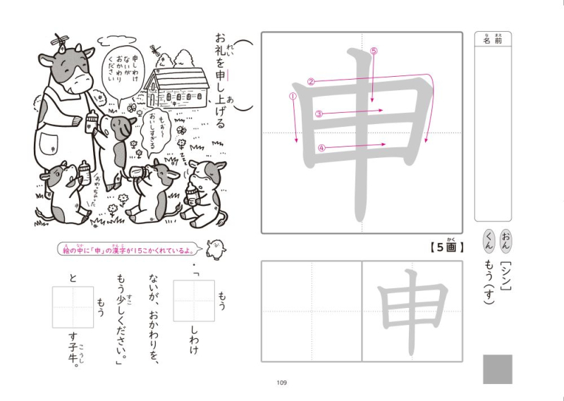 ・「書き順」→「なぞり書き」→「漢字の読み」→「漢字の書き」→「イラストを見る」の5ステップで