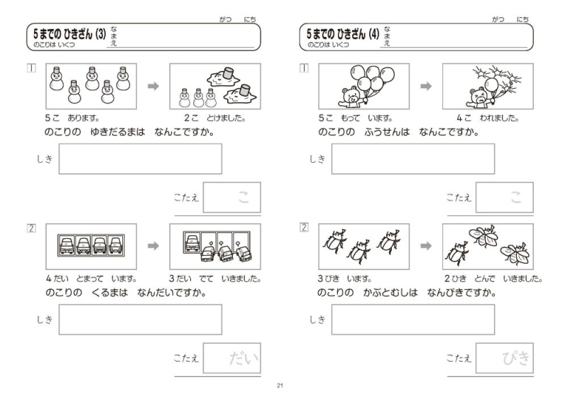 5までの ひきざん