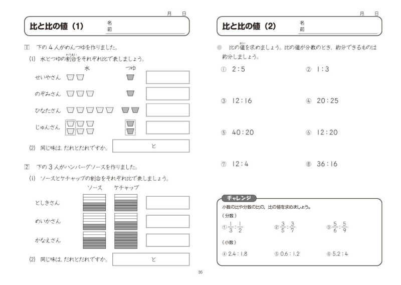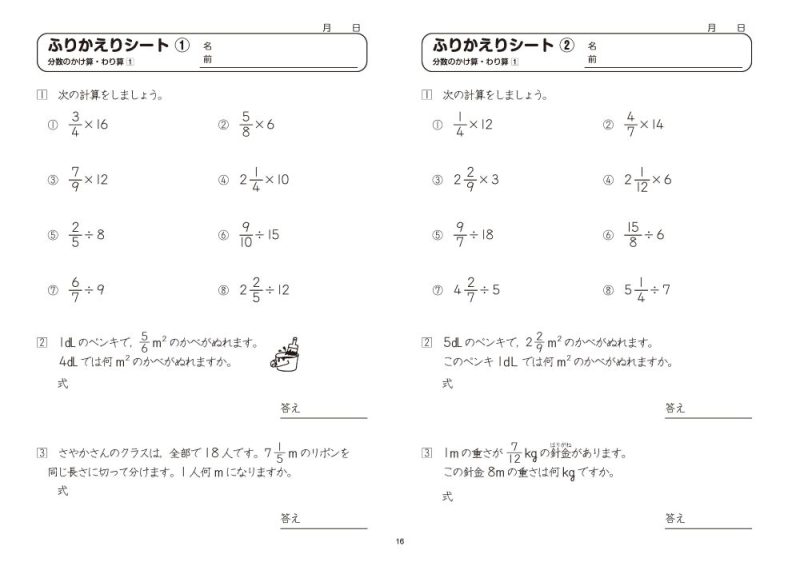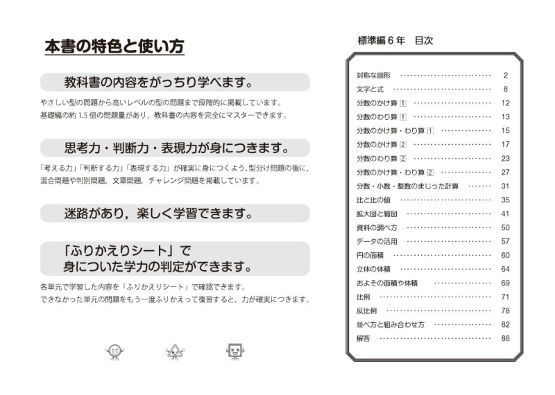 ふりかえりシート付き 教科書算数プリント【標準編】 6年