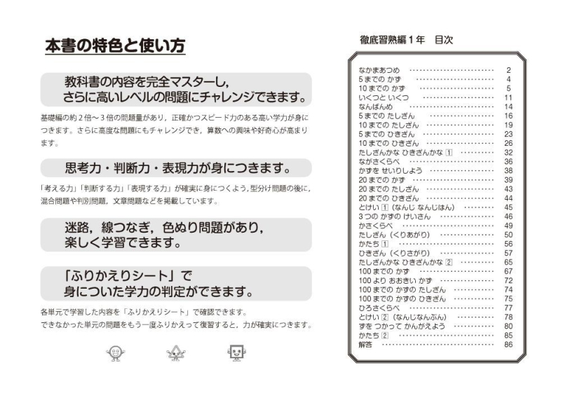 ふりかえりシート付き 教科書算数プリント【徹底習熟編】 1年