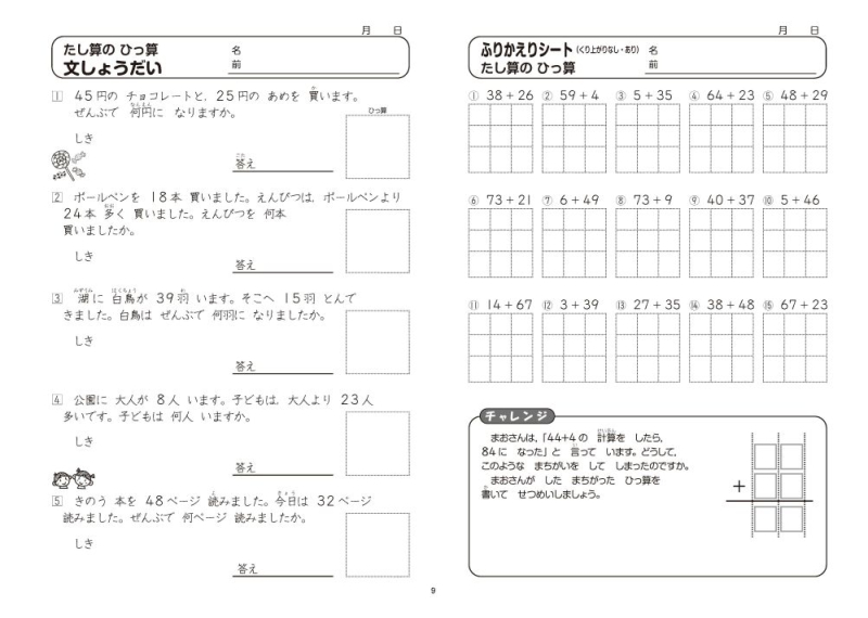 ふりかえりシート付き 教科書算数プリント【徹底習熟編】 2年