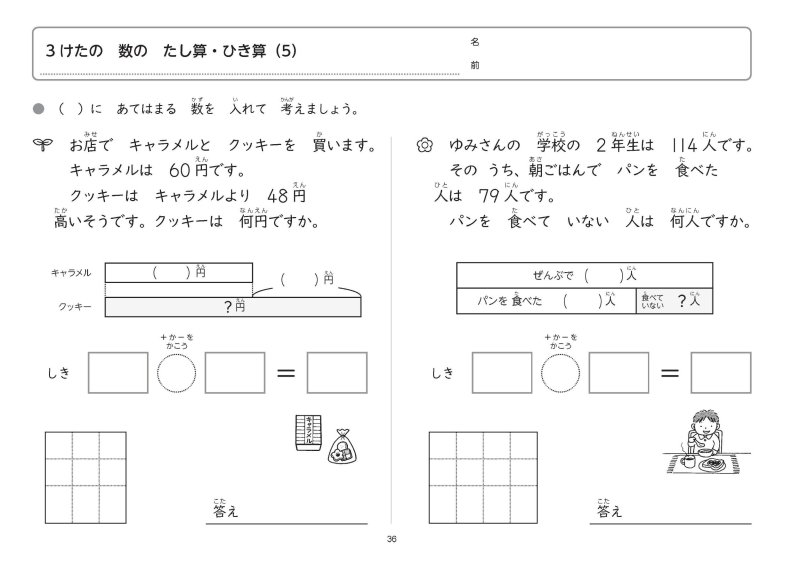 ・主に文章題を中心とした単元にしぼった内容になっています。(高学年では,掲載単元は多岐にわたります)