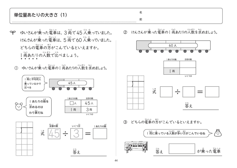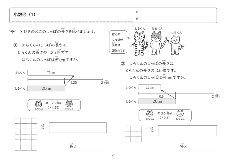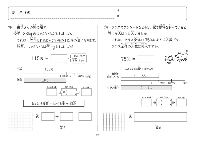 ・主に文章題を中心とした単元にしぼった内容になっています。(高学年では,掲載単元は多岐にわたります)