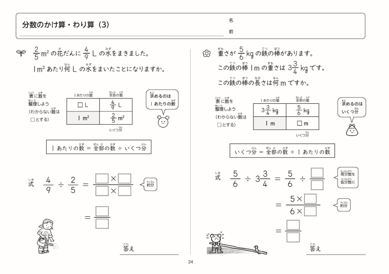 分数×整数、分数÷整数