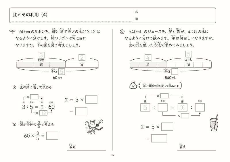 ・主に文章題を中心とした単元にしぼった内容になっています。(高学年では,掲載単元は多岐にわたります)
